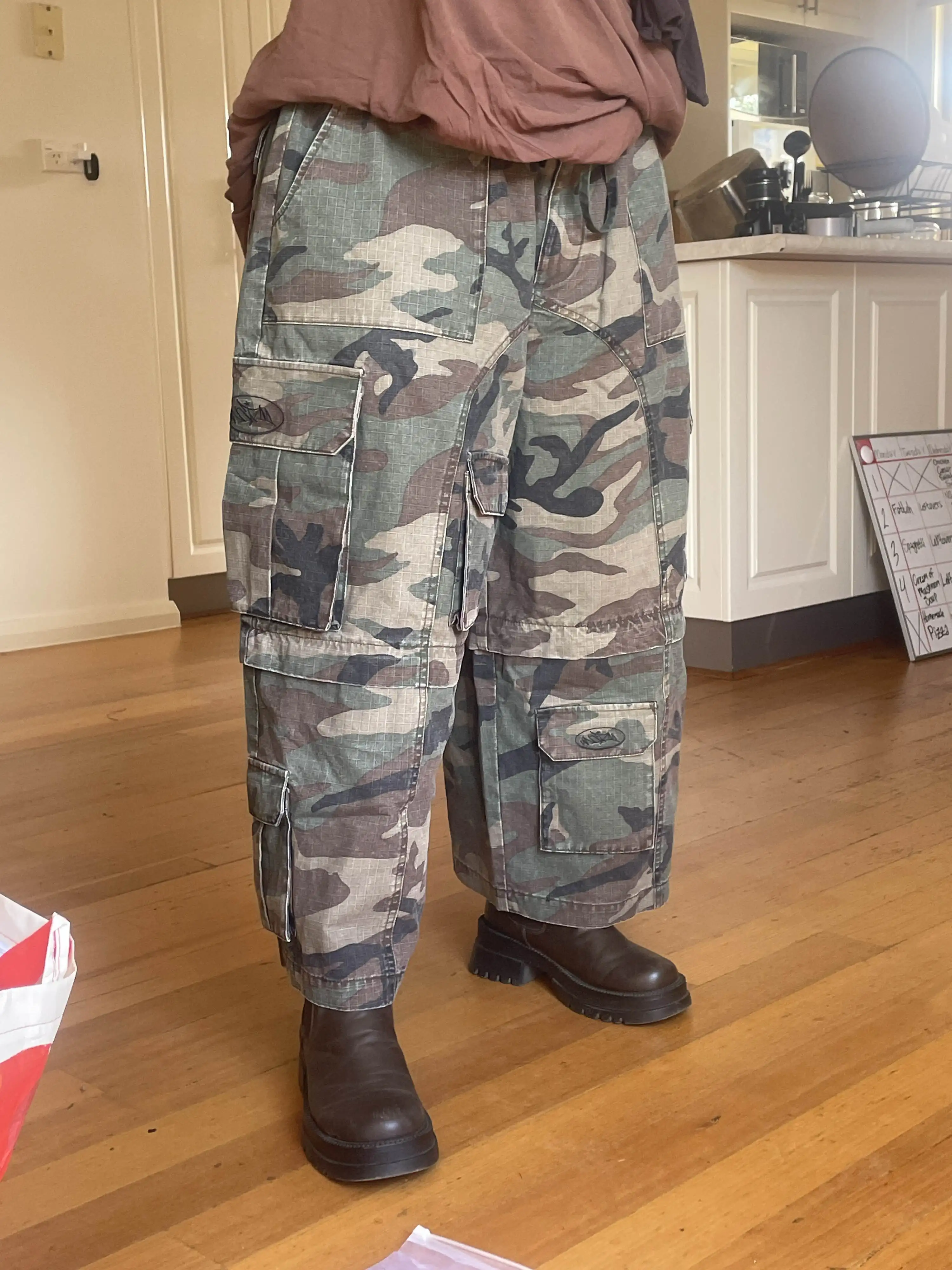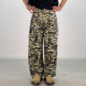 Pantaloni da uomo in cotone 100% mimetico personalizzati da uomo Design ampio con pieghe stile Hip Hop modello diretto pantaloni Cargo produttore